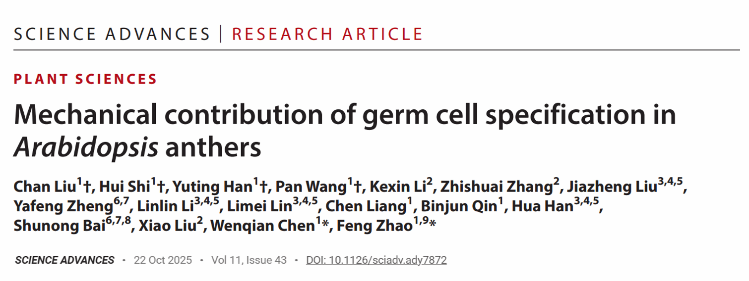 自动化研究所多家单位在《Science Advances》发表了题为“Mechanical contribution of germ cell specification in Arabidopsis anthers”的最新原创研究成果。