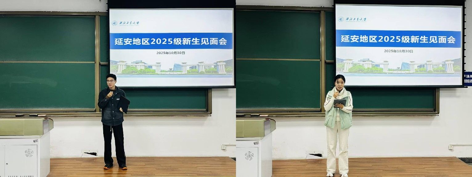 张隽宁先后发言。两人分别表达了对大学生活的憧憬与期待,表示将传承延安红色基因,以饱满热情投入学习,积极参与校园活动,努力成为兼具专业素养与责任担当的工大学子,言语间尽显新生朝气。